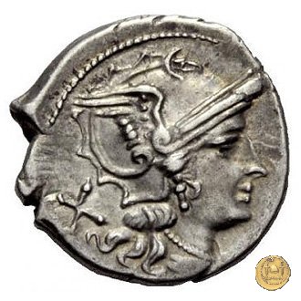 Testa di Roma a destra, con elmo attico alato; ricciolo di capelli sulla spalla sinistra. Dietro: