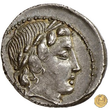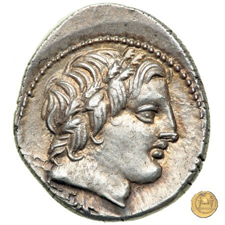Testa di Apollo a destra, con corona di foglie di quercia. In basso un fulmine.