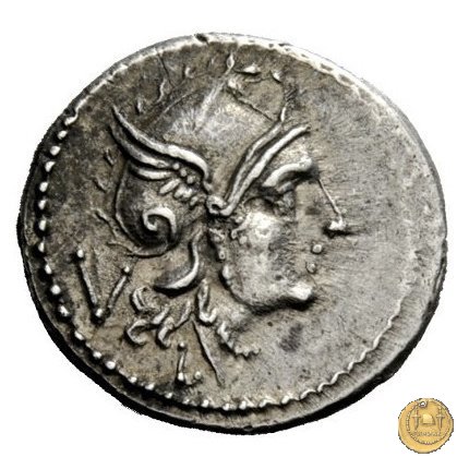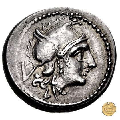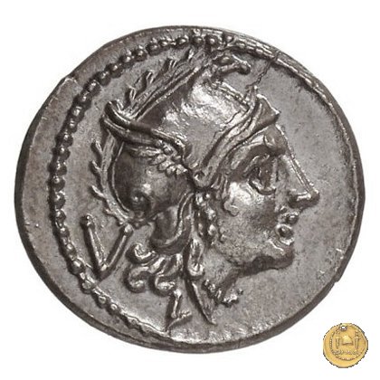 Testa di Roma a destra, con elmo frigio alato. Sotto: L ; dietro: V