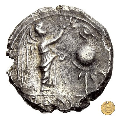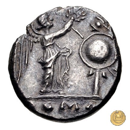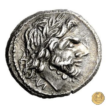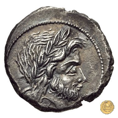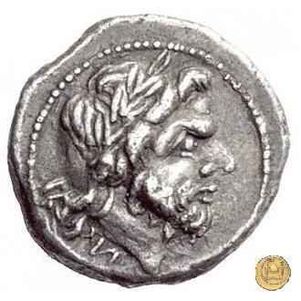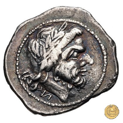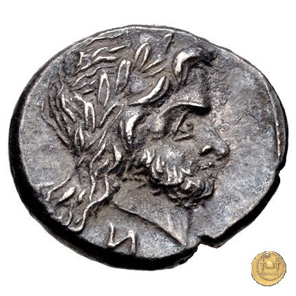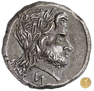 Testa laureata di Giove a destra. Sotto: N