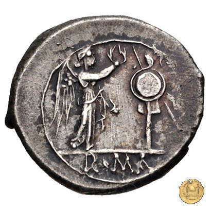 La Vittoria stante a destra, incorona un trofeo d'armi.