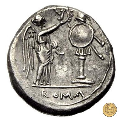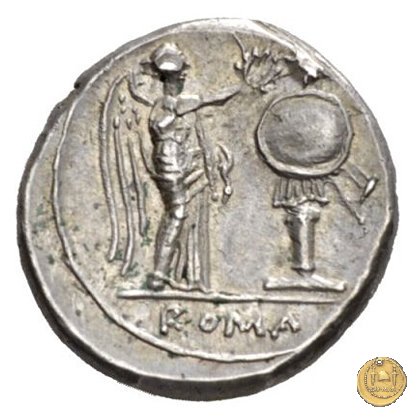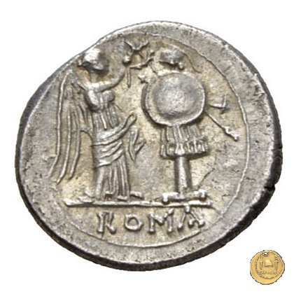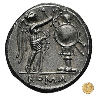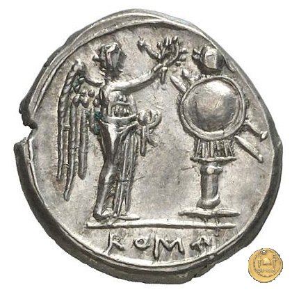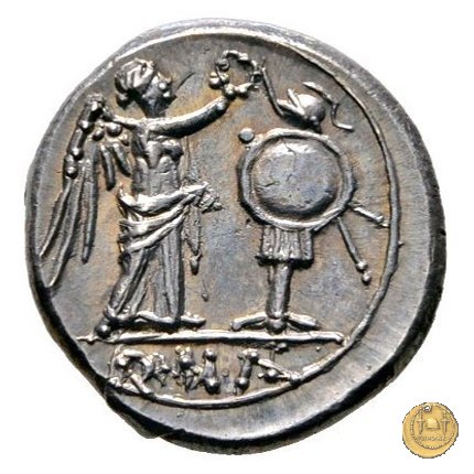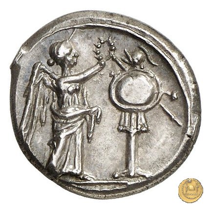 La Vittoria stante a destra, incorona un trofeo d'armi.