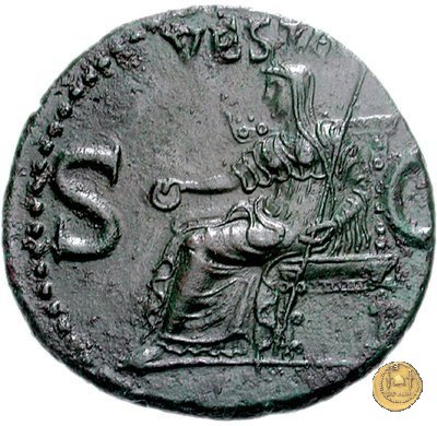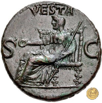 Vesta, velata e drappeggiata, seduta verso sinistra su di un trono. Nella mano destra tiene una patera, nella sinistra uno scettro.