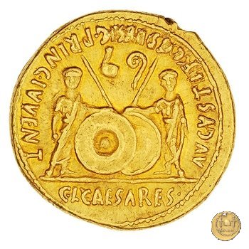 | Legend: ↺ AVGVSTI F COS DESIG PRINC IVVENT; C L CAESARES (esergo)