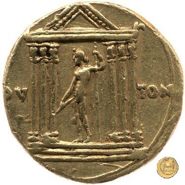 Giove, all'interno di un tempio esastilo, in piedi verso sinistra. Nella mano destra tiene un fulmine, nella sinistra, uno scettro.