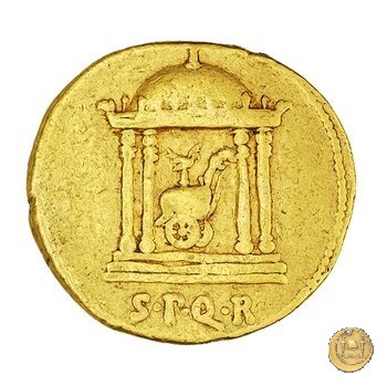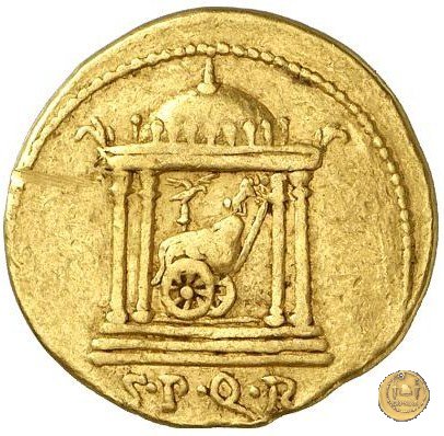 Un tempio circolare, con visibili quattro colonne, con all'interno un carro trionfale rivolto verso destra contenente un'aquila e una miniatura con quattro cavalli rampanti.
