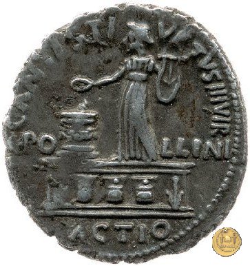 Legenda al R/  C ANTIST  VETVS IIIVIR; → APO - LLINI; → ACTIO (esergo). |