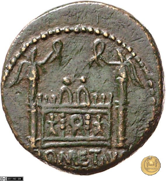 Fronte dell'altare di Lione, decorato con la corona civica in mezzo a due allori, tenuti da figure stilizzate; a sinistra e a destra dell'altare due colonne con su delle Vittorie con in mano delle ghirlande.