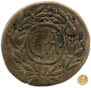 La legenda, circondata da una linea, all'interno di una corona d'alloro.