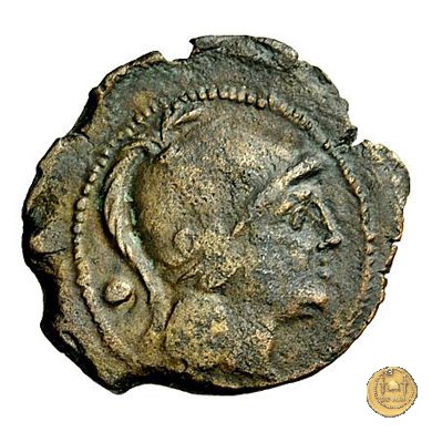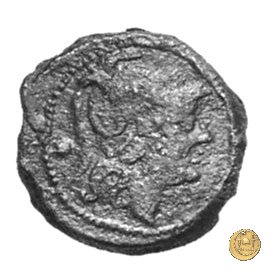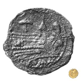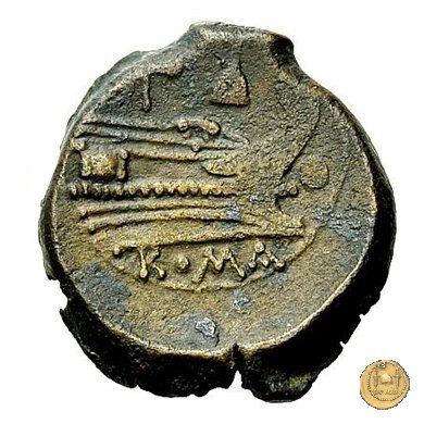 Testa elmata di Roma a destra. Dietro un globetto. Prora di nave a destra. In alto martello e apex; davanti un globetto; in basso: ROMA