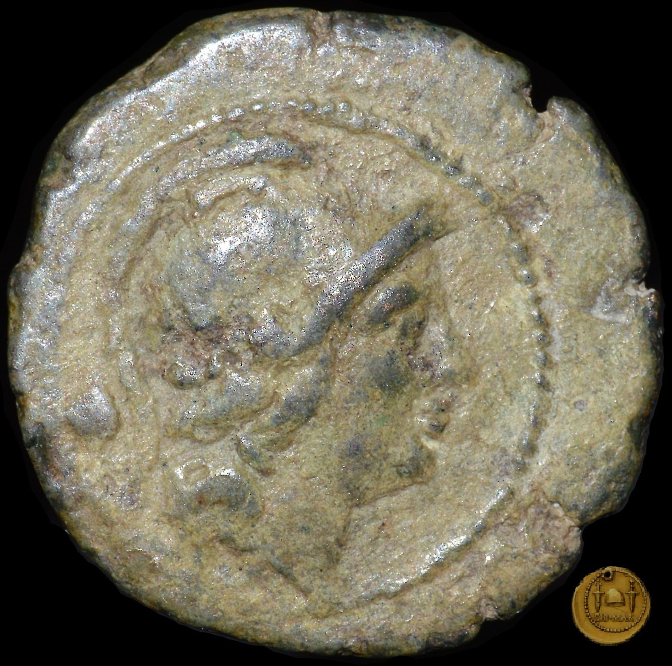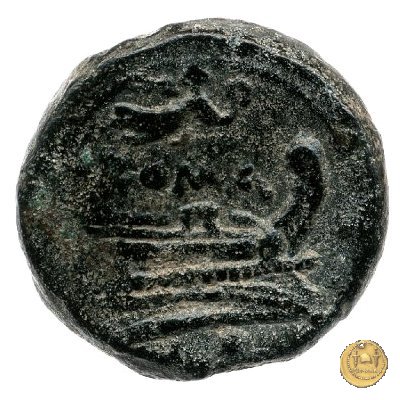 Prora di nave a destra. In alto la Vittoria con corona e ROMA ; in basso un globetto.