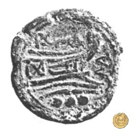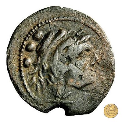 Testa di Ercole a destra, con il capo avvolto nella pelle leonina. Dietro tre globetti.