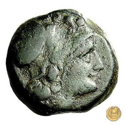 Testa elmata di Minerva a destra. In alto quattro globetti. Prora di nave a destra. In alto: ROMA ; davanti un delfino; in basso quattro globetti.