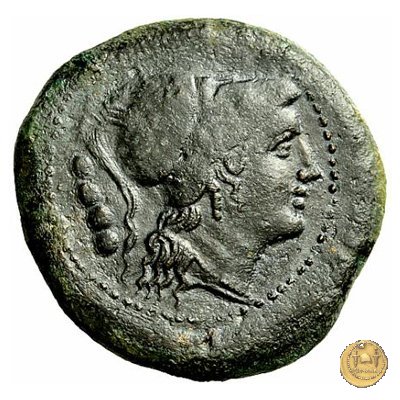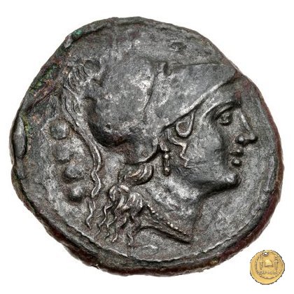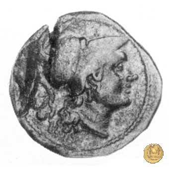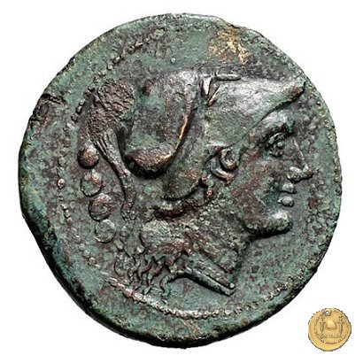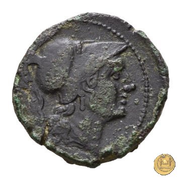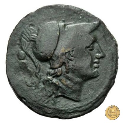 Testa elmata di Minerva a destra. Dietro quattro globetti.