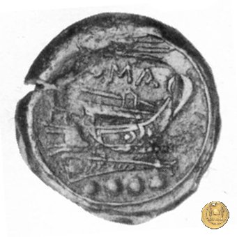 Prora di nave a destra. In alto una spiga di grano e ROMA ; in basso quattro globetti.