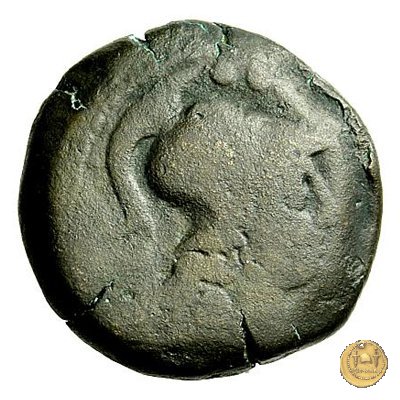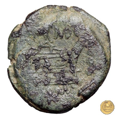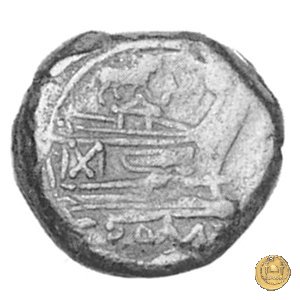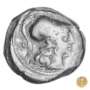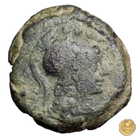 Testa elmata di Minerva a destra. In alto quattro globetti.