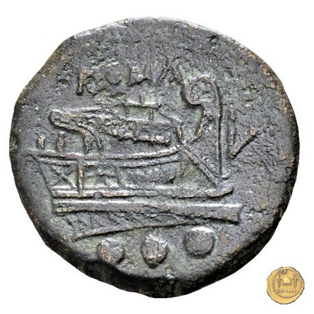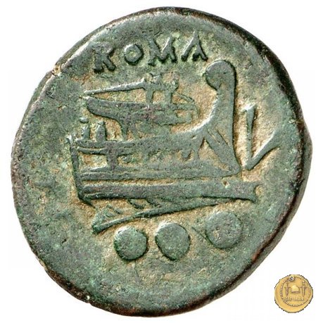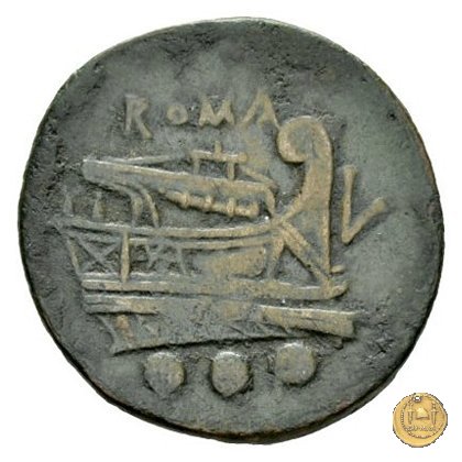 Prora di nave a destra. In alto: ROMA ; davanti: L ; in basso tre globetti.