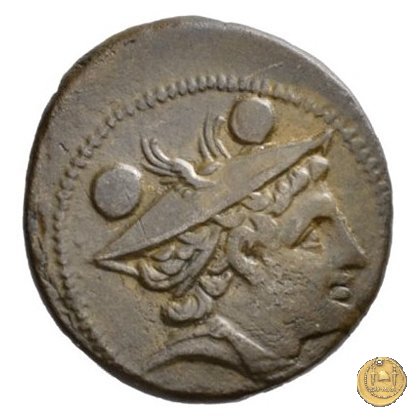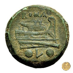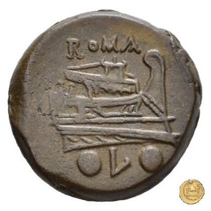 Testa di Mercurio a destra, con petaso alato. In alto due globetti. Prora di nave a destra. In alto: ROMA ; in basso: L tra due globetti.
