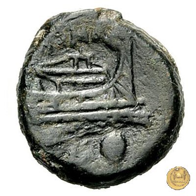 Testa elmata di Roma a destra. Dietro un globetto. Prora di nave a destra. In alto: ROMA ; in basso: L e un globetto.