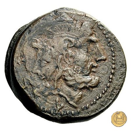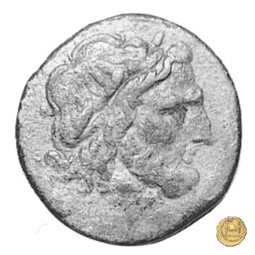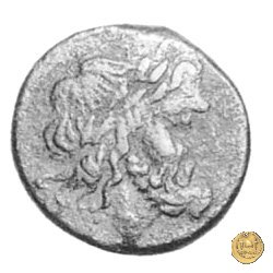 Testa laureata di Saturno a destra. In basso: L ; dietro: S