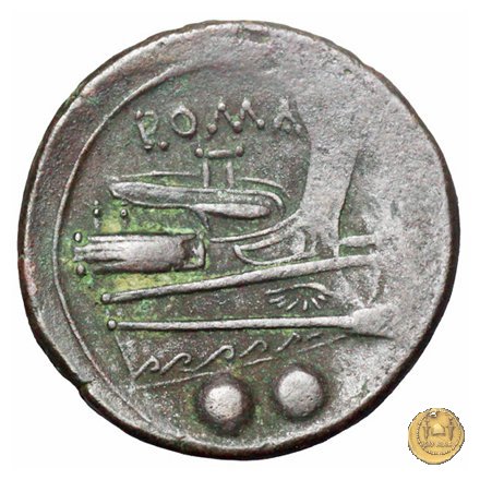 Prora di nave a destra. In alto: ROMA ; in basso due globetti.