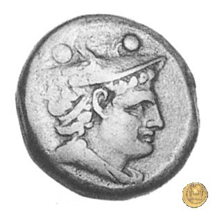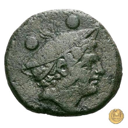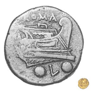 Testa di Mercurio a destra, con petaso alato. In alto due globetti. Prora di nave a destra. In alto: ROMA ; in basso: L tra due globetti.