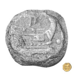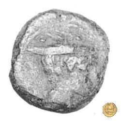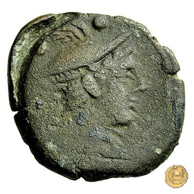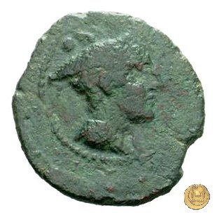 Testa di Mercurio a destra, con petaso alato. In alto due globetti.