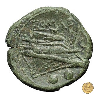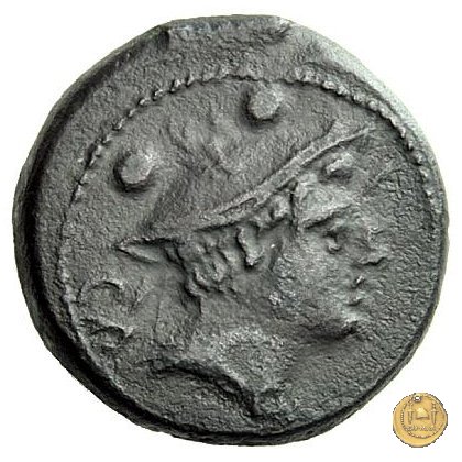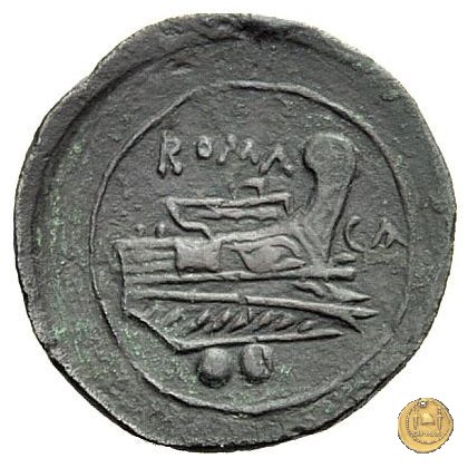 Testa di Mercurio a destra, con petaso alato. In basso oppure dietro: CA ; in alto due globetti. Prora di nave a destra. In alto: ROMA ; davanti: CA ; in basso due globetti.