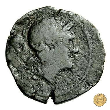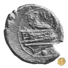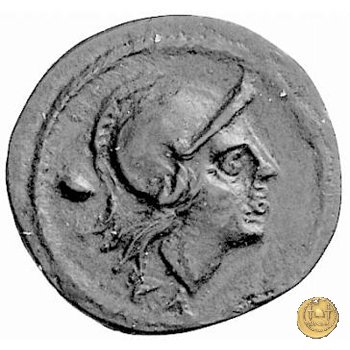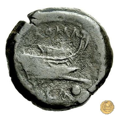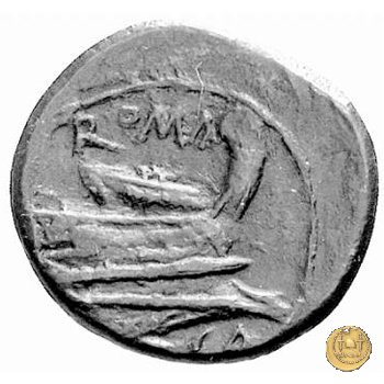 Testa elmata di Roma a destra. In basso: CA ; dietro un globetto. Prora di nave a destra. In alto: ROMA ; in basso: CA e un globetto.