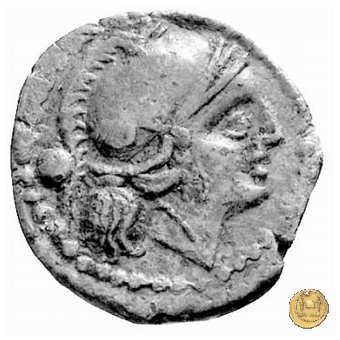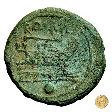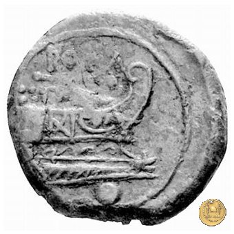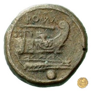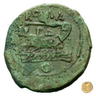 Prora di nave a destra. In alto: ROMA e un bastone; in basso un globetto.