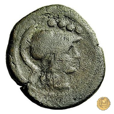 Testa elmata di Minerva a destra. In alto quattro globetti.