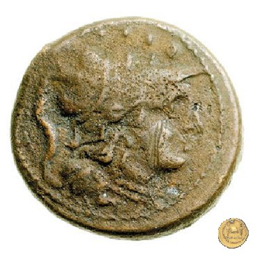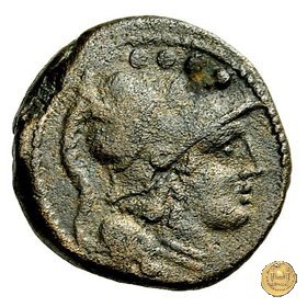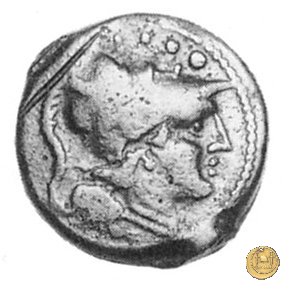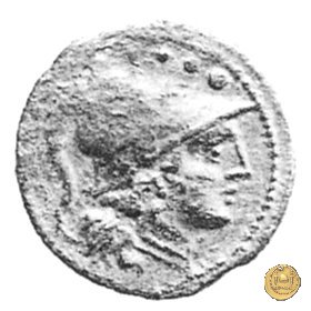 Testa elmata di Minerva a destra. In alto quattro globetti.