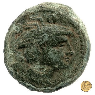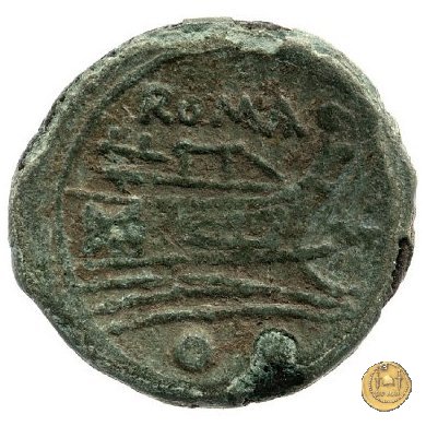 Testa di Mercurio a destra, con petaso alato. In alto due globetti. Prora di nave a destra. In alto: ROMA ; davanti una stella; in basso due globetti.