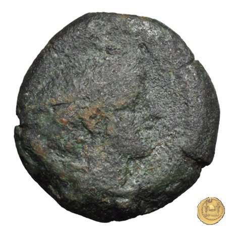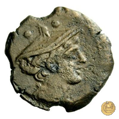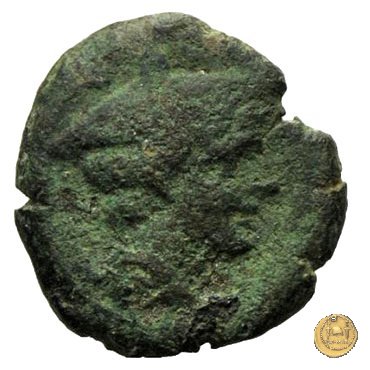 Testa di Mercurio a destra, con petaso alato. In alto due globetti.