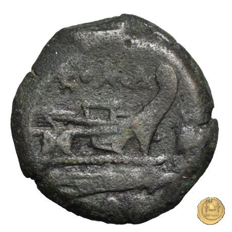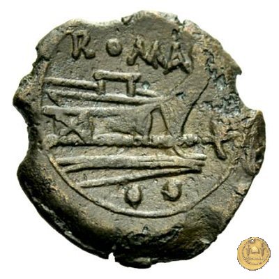 Prora di nave a destra. In alto: ROMA ; davanti un elmo; in basso due globetti.