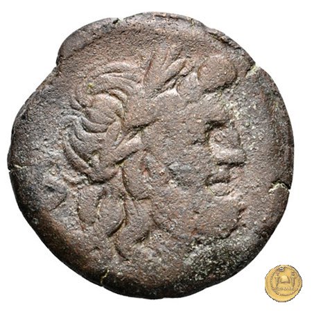 Testa laureata di Saturno a destra. Dietro: S