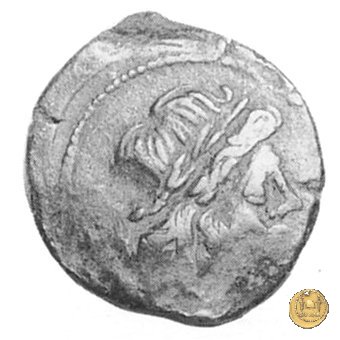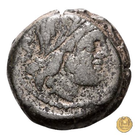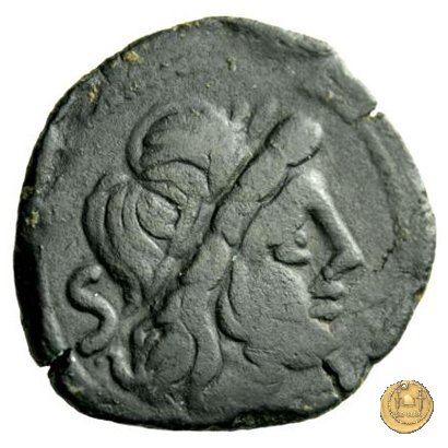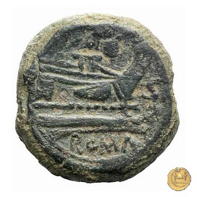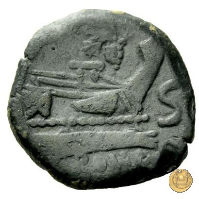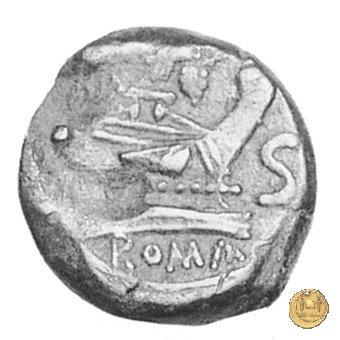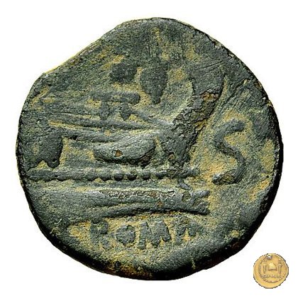 Prora di nave a destra. In alto una farfalla su un ramo di vite (con foglia e chicchi d'uva); davanti: S ; in basso: ROMA