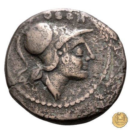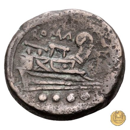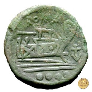 Testa elmata di Minerva a destra. In alto quattro globetti. Prora di nave a destra. In alto: ROMA ; davanti un'ancora; in basso quattro globetti.