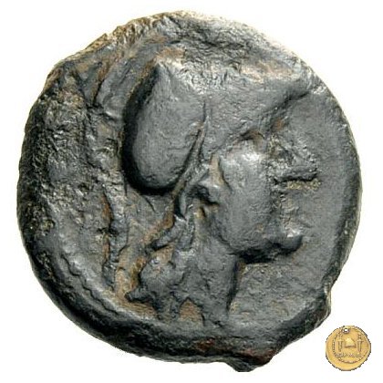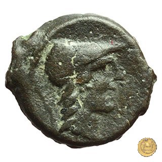 Testa elmata di Minerva a destra. Dietro quattro globetti.