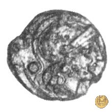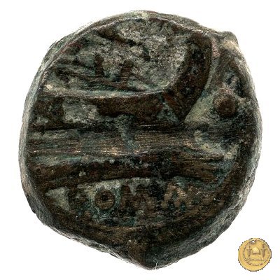 Prora di nave a destra. In alto una cornucopia; davanti un globetto; in basso: ROMA