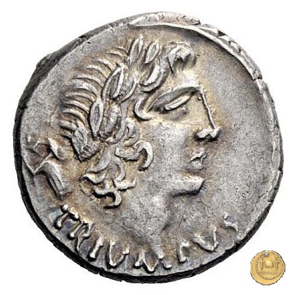 Testa laureata del Triumphus a destra, con trofeo d'armi sulle spalle. Una lupa tiene nelle fauci un pezzo di legno che depone sul fuoco; un'aquila alimenta la fiamma battendo le ali.