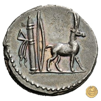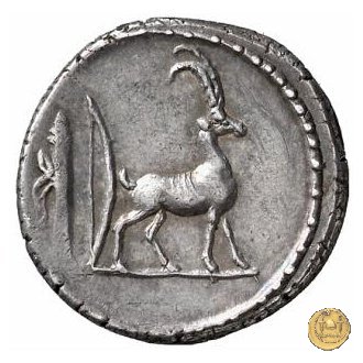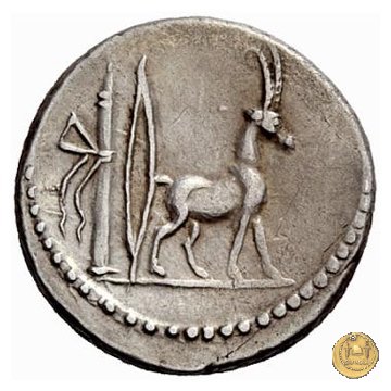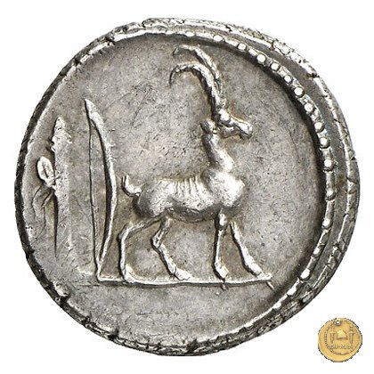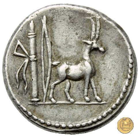 Testa femminile a destra, con il causia. Capra cretese a destra. Dietro arco e faretra.