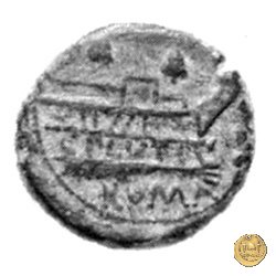 Prora di nave a destra, con C. PLVTI inscritto sulla fiancata. In alto i pilei dei Dioscuri; davanti tre globetti; in basso: ROMA
