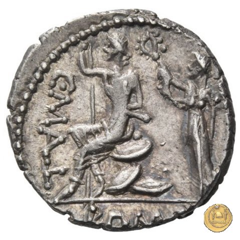 | Emissione congiunta di tre magistrati monetari: L. Caecilius Metellus (Cr. 335/1 - scheda R-G175/1) - A. Postumius Albinus - C. Publicius Malleolus. La differenza tra le due emissioni è che in questo della Poblicia sono assenti i nomi dei due magistrati al D/ |