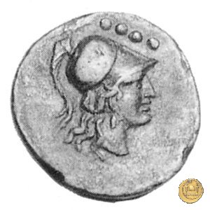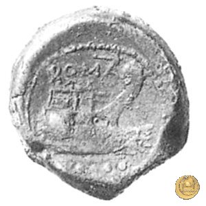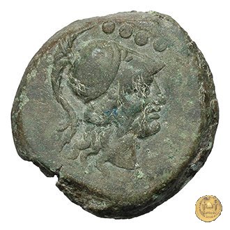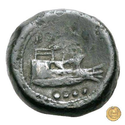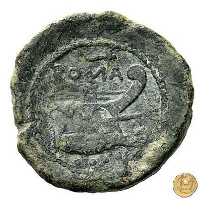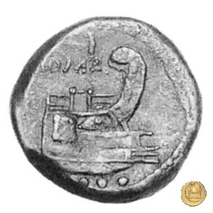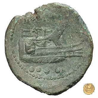 Testa elmata di Minerva a destra. In alto quattro globetti. Prora di nave a destra. In alto un martello e ROMA ; in basso quattro globetti.
