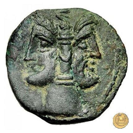 Testa laureata di Giano; i due volti sono divisi da un altare inghirlandato con serpente attorcigliato sulla sommità.