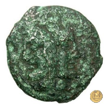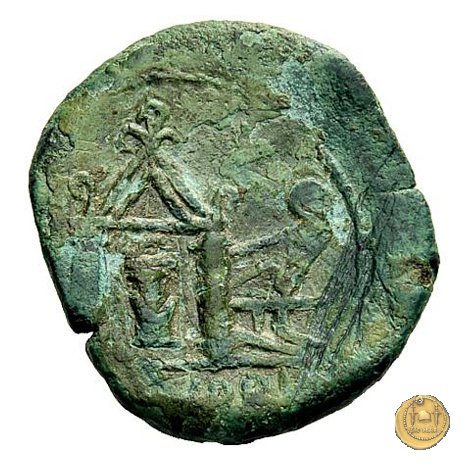 Testa gianiforme: a sinistra Ercole, con il capo avvolto nella pelle leonina e la clava; a destra Mercurio, con il petaso alato e il caduceo. Tempio a due colonne e prora di nave a destra; all'interno del tempio un'ara inghirlandata con serpente attorcigliato sulla sommità. In basso: L. RVBRI ; a sinistra: DOSSEN oppure DOSSE