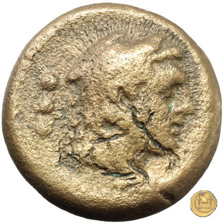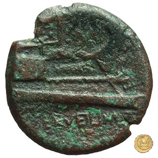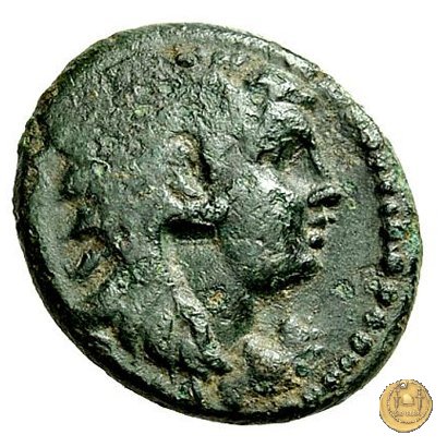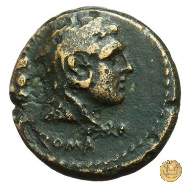 Testa di Ercole a destra, con il capo avvolto nella pelle leonina. Dietro tre globetti; in basso: ROMA