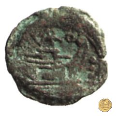 Testa elmata di Minerva a destra. In alto quattro globetti. Prora di nave a destra. In alto: VAR O ; davanti quattro globetti; in basso: ROMA