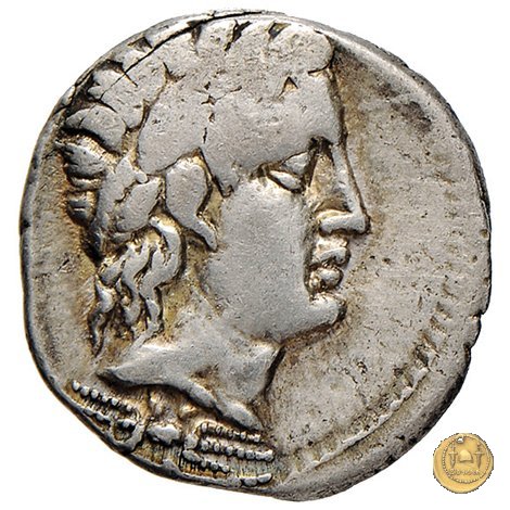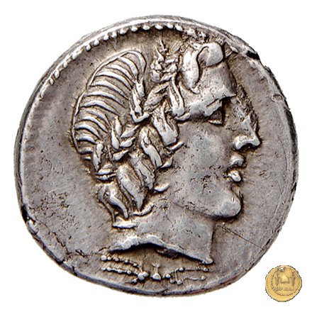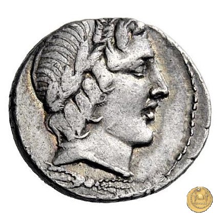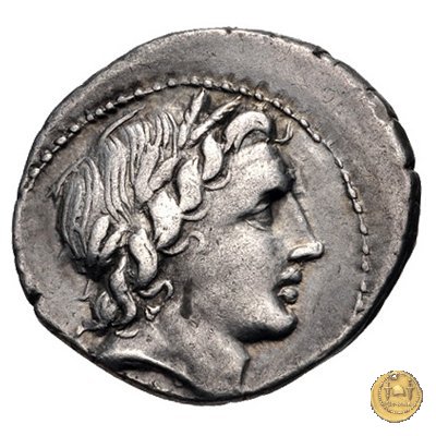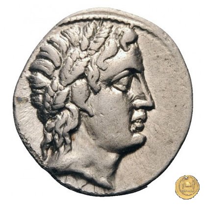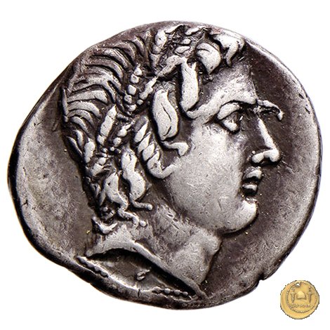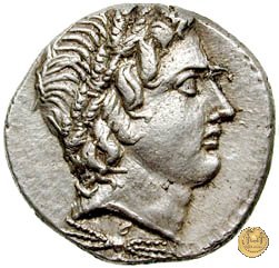 Testa di Apollo a destra, con corona di foglie di quercia. In basso un fulmine.
